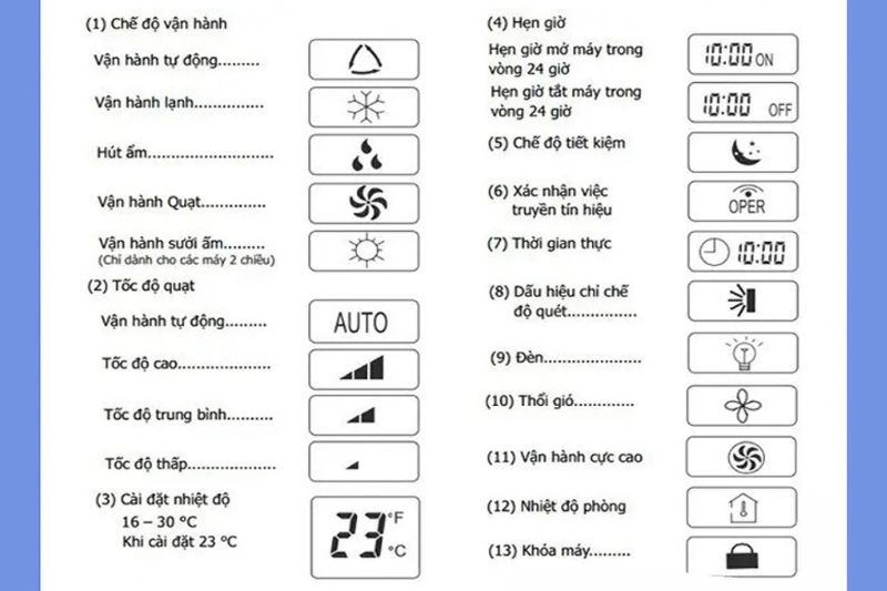 Việc hiểu rõ các ký hiệu này sẽ giúp bạn sử dụng thiết bị hiệu quả hơn, đồng thời tránh các lỗi thao tác như bật sai chế độ khiến nhiều người tưởng rằng remote máy lạnh không tắt được.